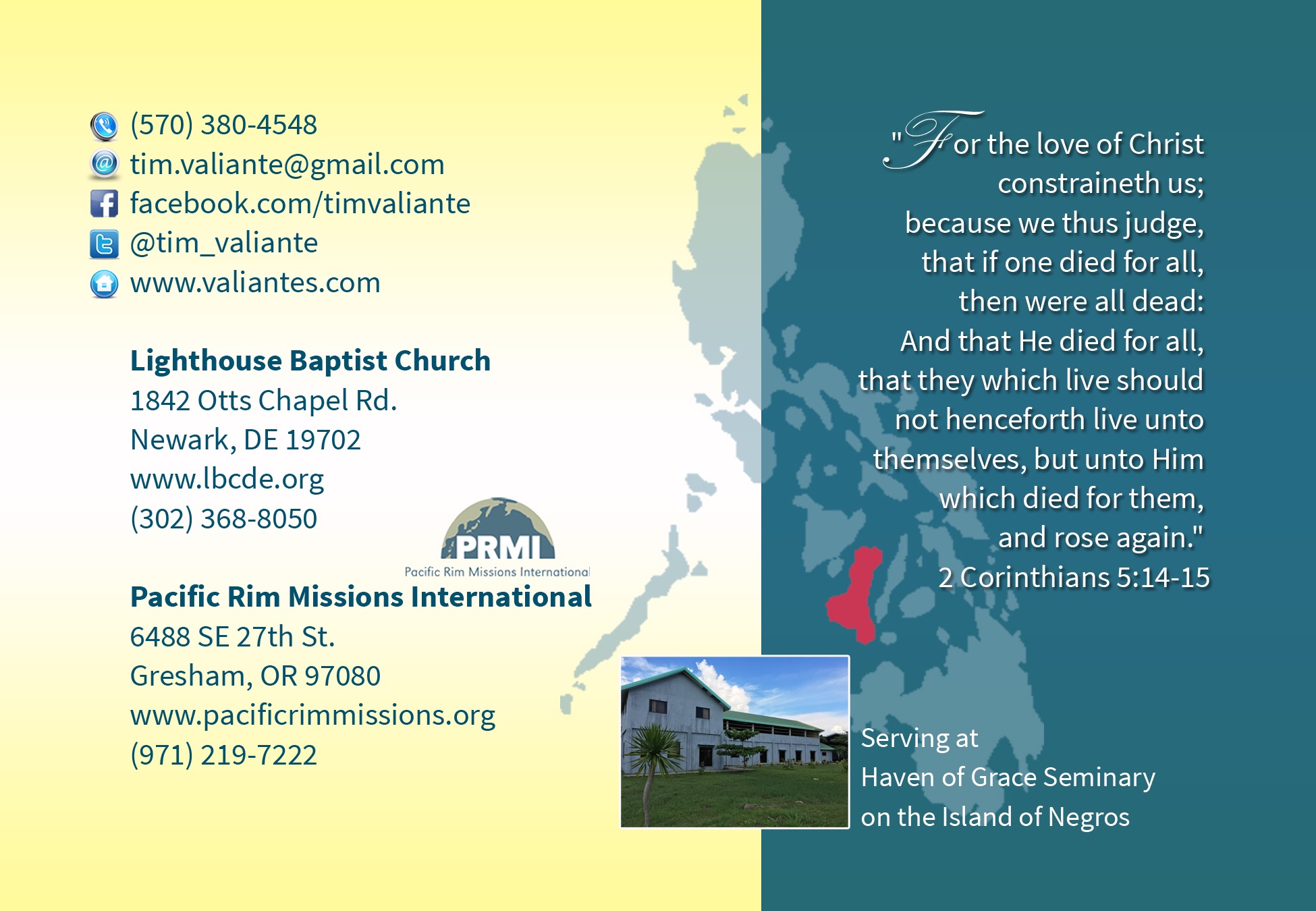- Commissioning us for ministry in the Philippines under their authority as a local body of believers (see Acts 13:1-3 to find the pattern for this in Scripture)